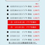 2025ー2026 年末年始料金のご案内
